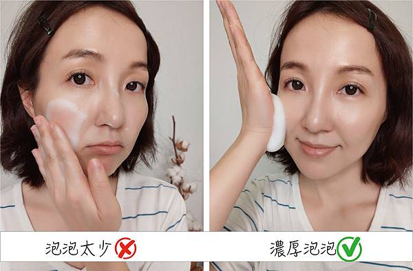 建議用徒手起的泡泡較綿密扎實,若還不太會起泡,則可用起泡網輔助,可以搓出又多又細密的泡泡(美容材料行、美妝店....都可以買得到)