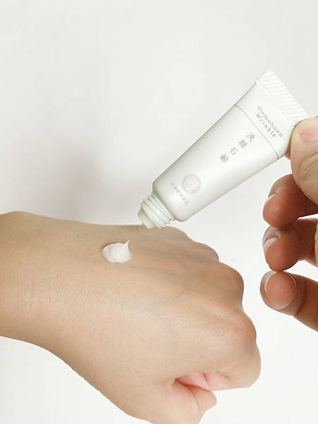使用時,只要擠出約2公分長的用量就可以,以力道最弱的無名指按摩全臉,由下往上用畫圈圈的方式輕柔塗抹均勻。(試用的管口剛好就是1公分,再次欣賞日本的職人精神與細心)